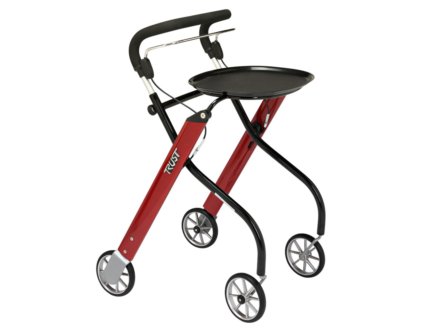 Rollatorn är lätt att fälla ihop och ta med till exempel i en bil då den tar liten plats. När den är hopfälld kan den lätt ställas undan eftersom den står själv på de fyra hjulen.
