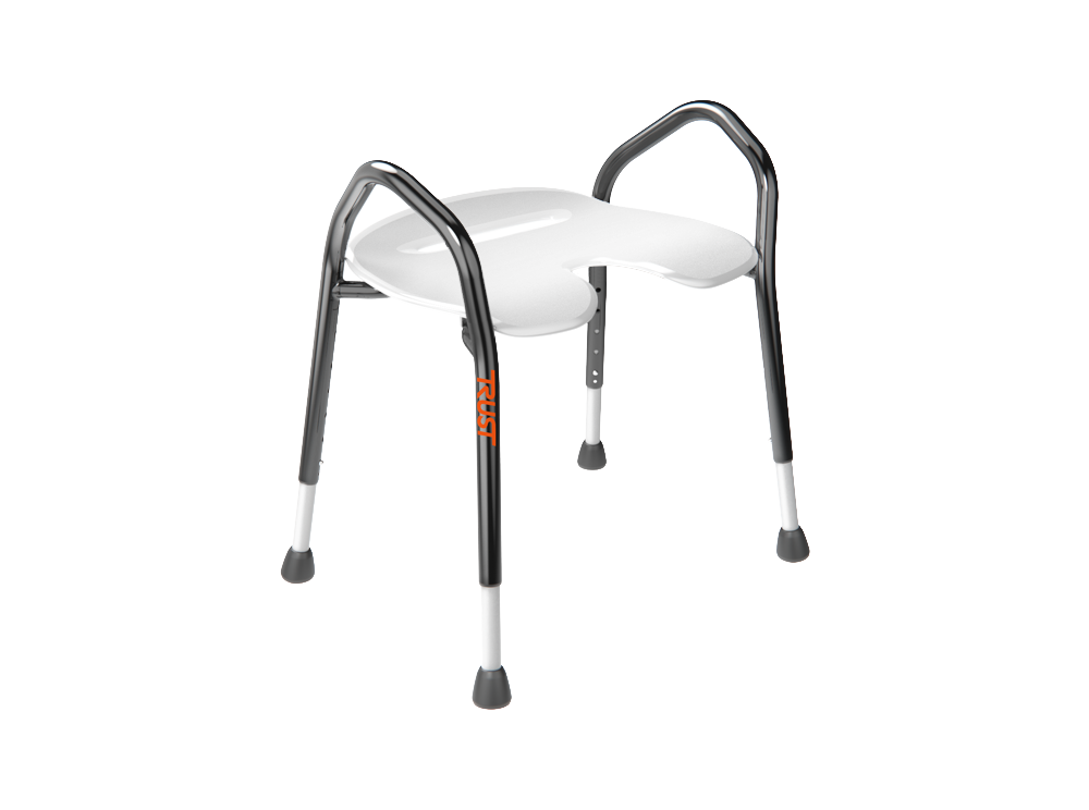 Let’s Enjoy är en ny duschstol med modern design avsedd att användas i duschen eller badrummet. Stolen har en vacker och stabil konstruktion för säker och trygg funktion. Benen är lätt justerbara till önskad höjd med ett enkelt handgrepp. Stolen är formgiven särskilt för att underlätta intimvård. Let’s Enjoy är justerbar från 42 till 53 centimeters höjd. Höjden justeras genom att man trycker in knapparna på benen och skjuter de nedre rören till önskat läge, varefter knapparna låses fast i justeringshålen.